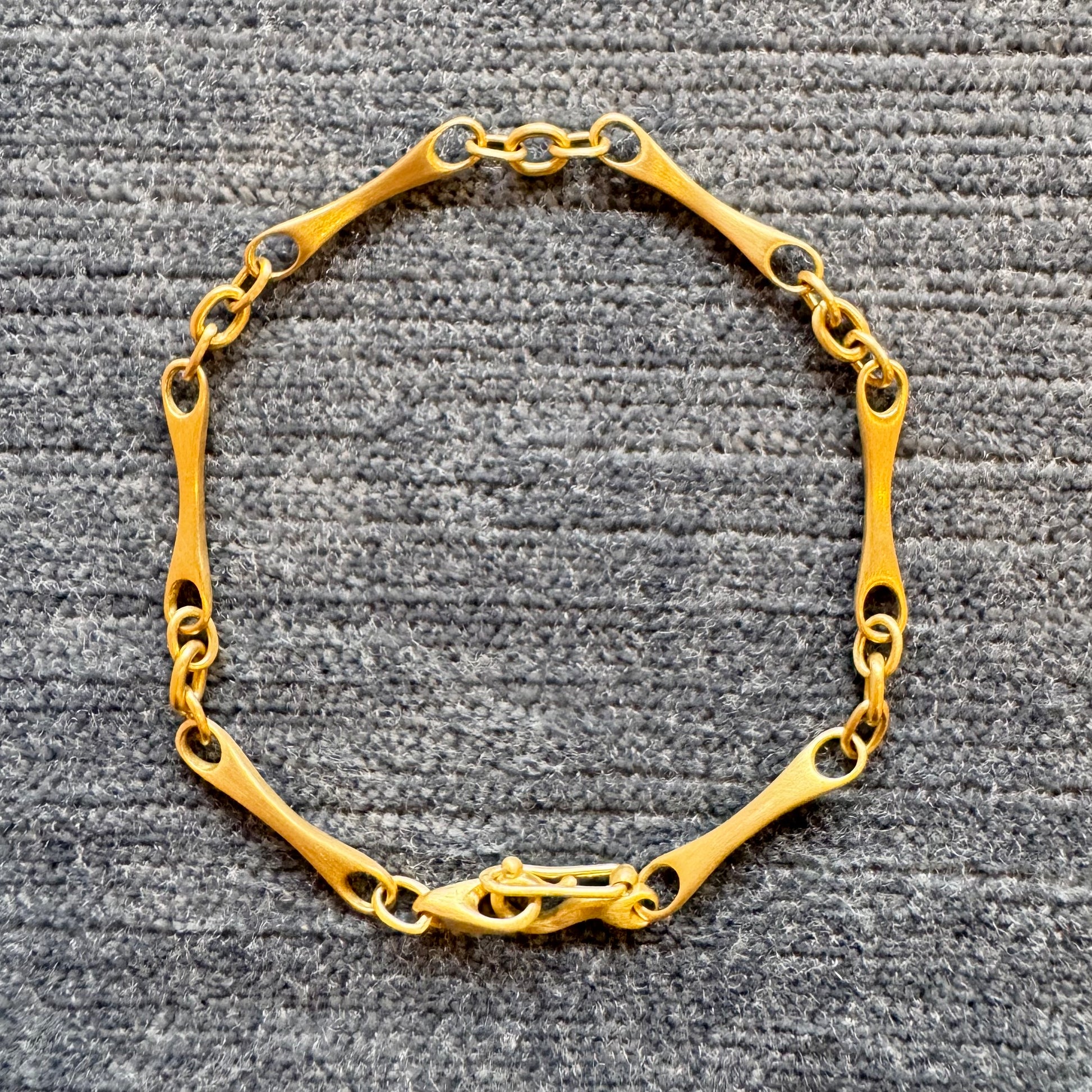 Crafted by hand from 18k gold, this city bar link bracelet combines timeless elegance with contemporary design.