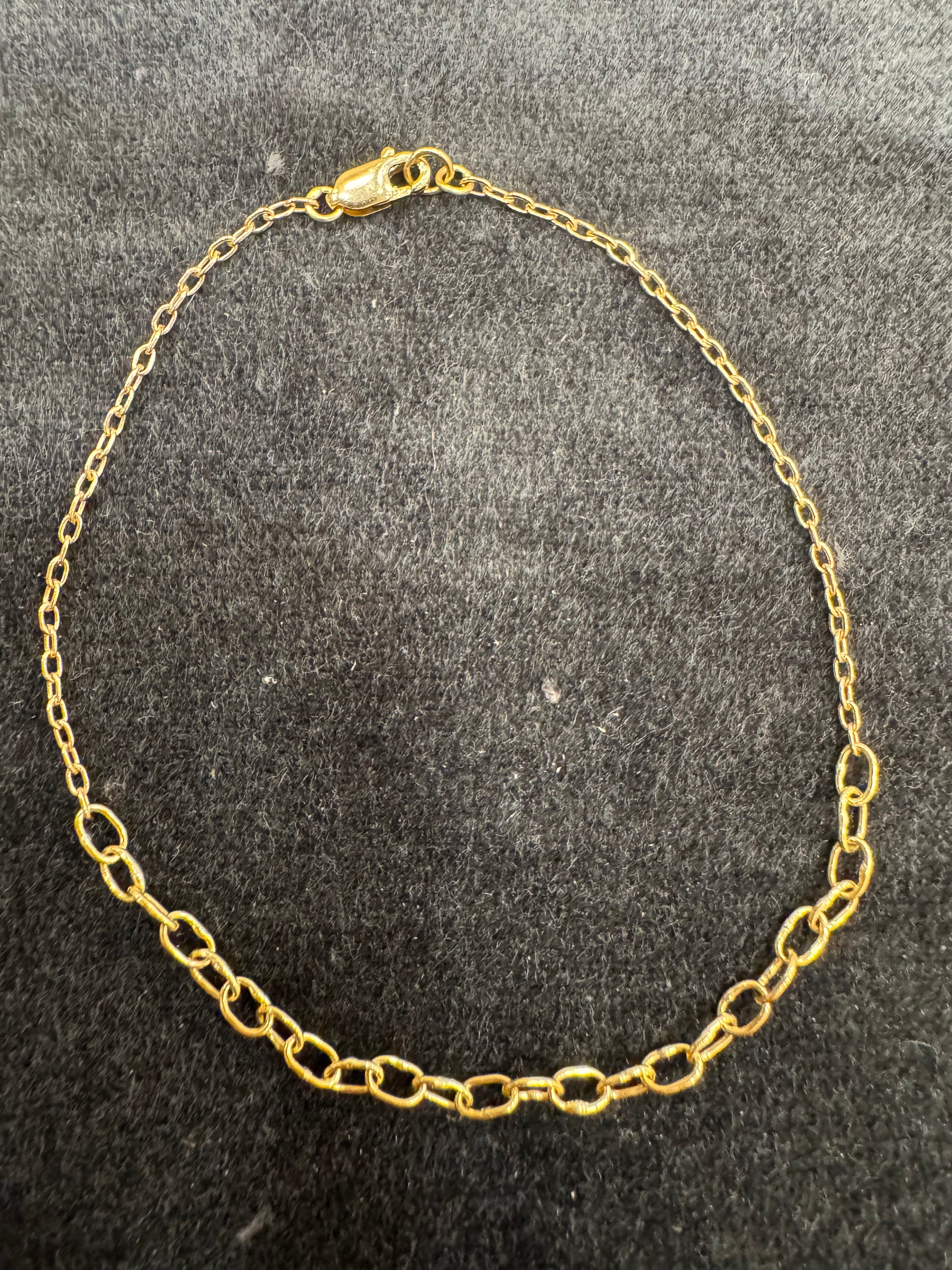 Tiny 18k gold handmade links attached to a 14k gold cable chain. Total length is 7" with lobster clasp.