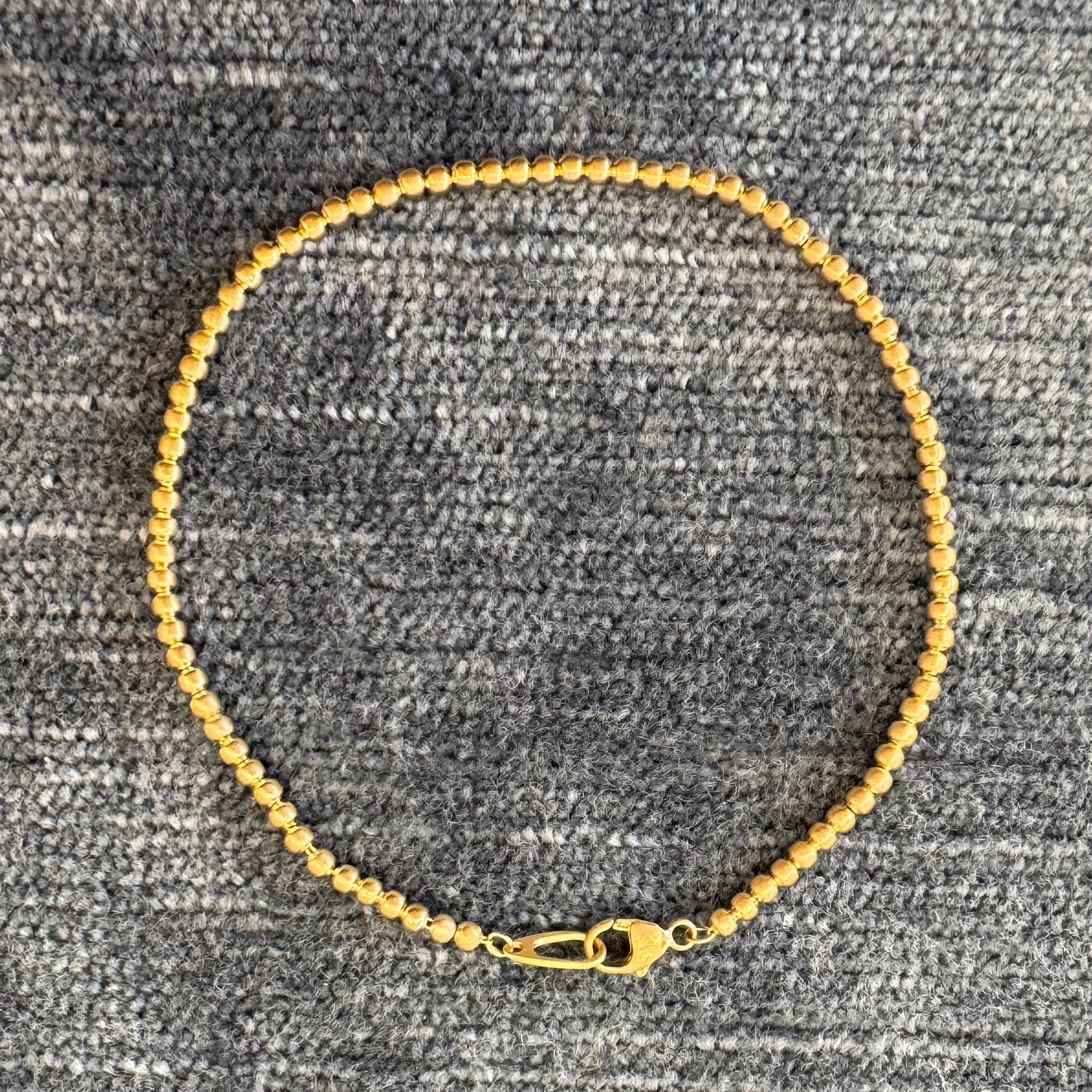 Delicate 18k gold chain bracelet adorned with handmade gold beads, each one carefully crafted for a unique, artisanal touch. The lightweight design makes it perfect for everyday wear or layering with other pieces.